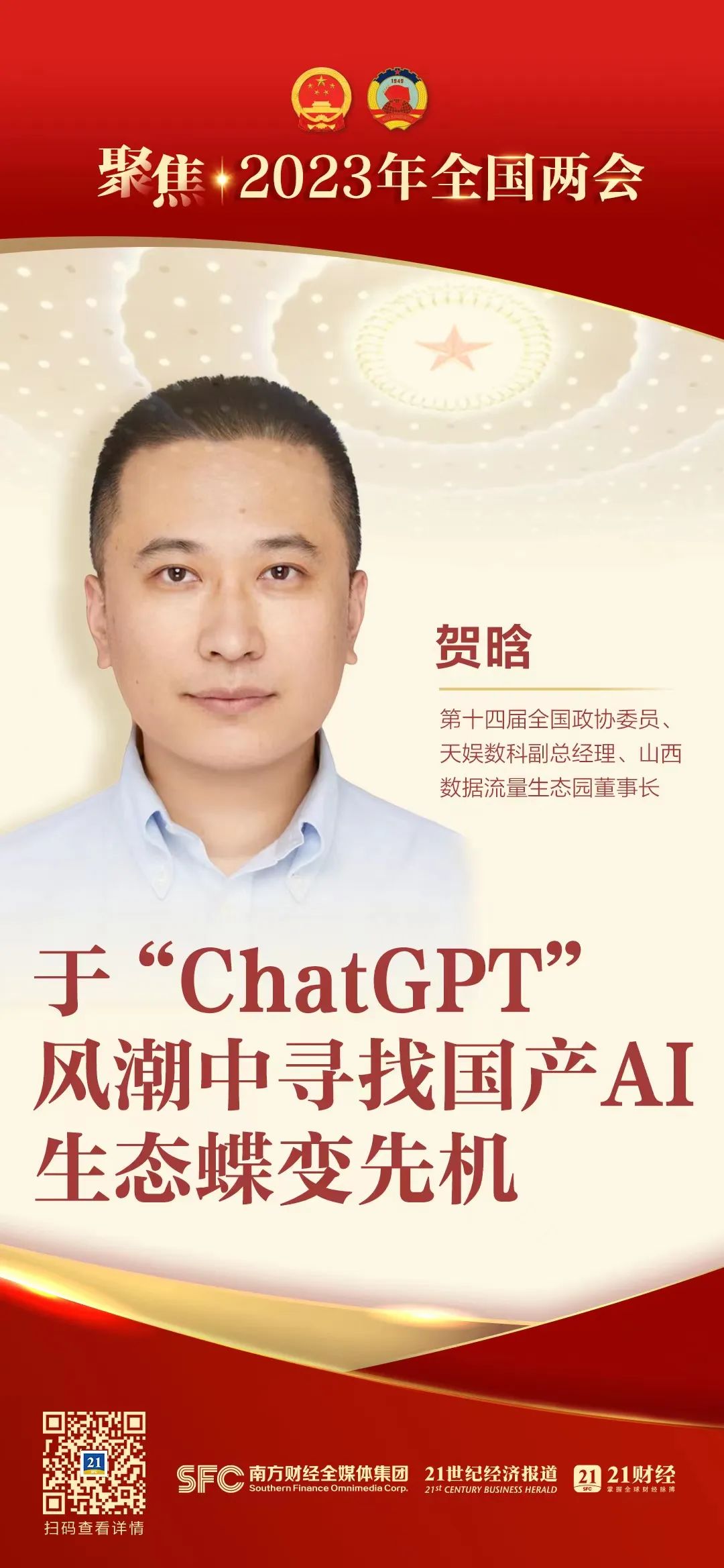 新華社客戶端 | 全國兩會專題報道全國兩會已經(jīng)召開,第十四屆全國政協(xié)委員,天娛數(shù)科董事、副總經(jīng)理賀晗,針對我國人工智能產(chǎn)業(yè)生態(tài)體系的三大短板,提出要加快推動數(shù)據(jù)要素高效流