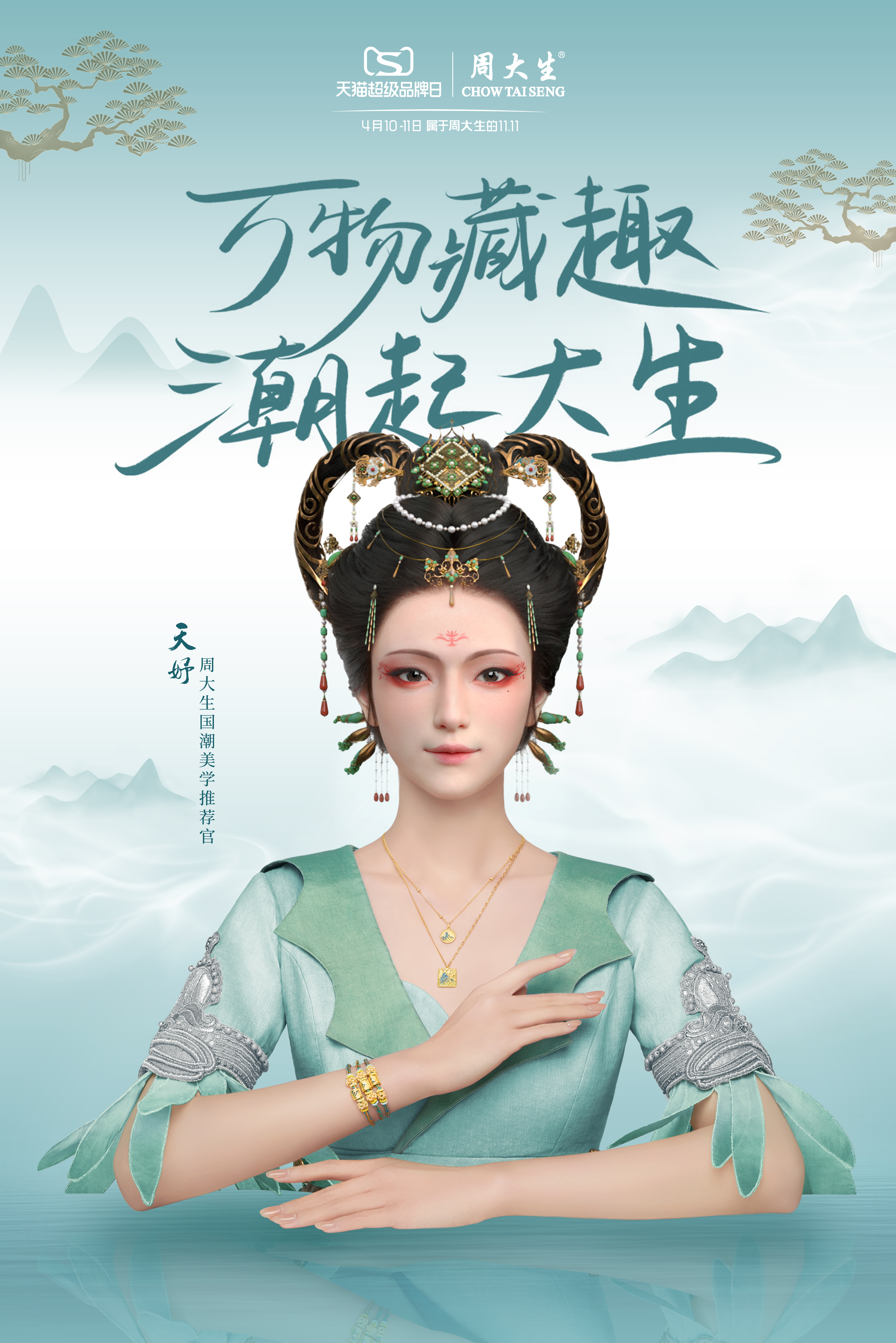 萬物藏趣,潮起大生,“妤”生有你,未來可期。4月7日,天娛數(shù)科打造的首個國風(fēng)虛擬數(shù)字人天妤化身為國潮美學(xué)推薦官,攜手國內(nèi)知名珠寶品牌周大生,在春暖花開之際為廣大消費者獻(xiàn)上了以