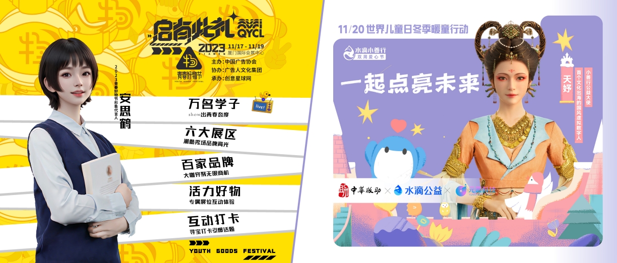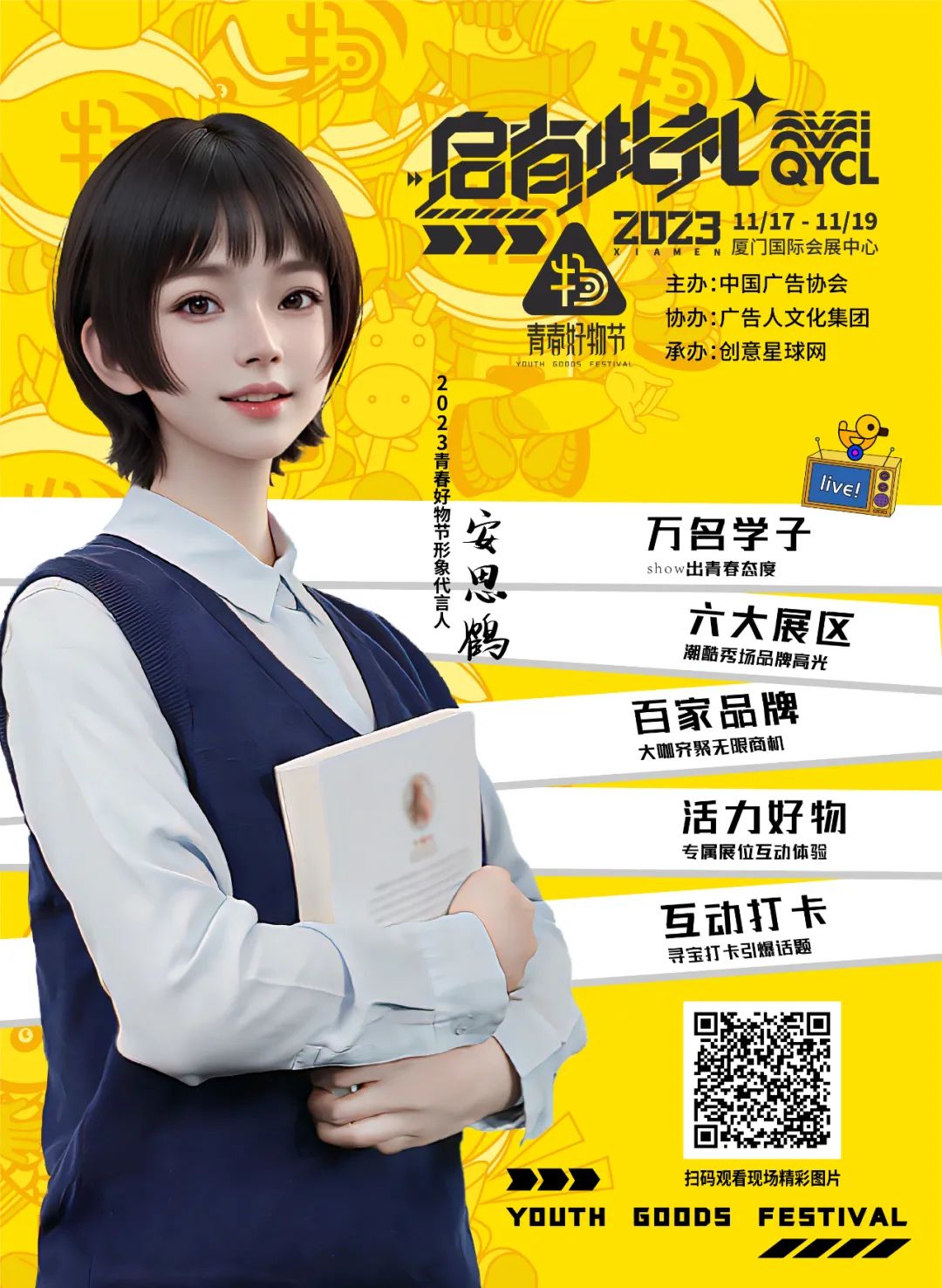 2023年11月16日,第30屆中國國際廣告節(jié)于廈門國際會展中心火爆開幕,天娛數(shù)科子公司元圓科技旗下由AI全流程打造的虛擬數(shù)字人安思鶴正式官宣為第30屆中國國際廣告節(jié)·2023青春好