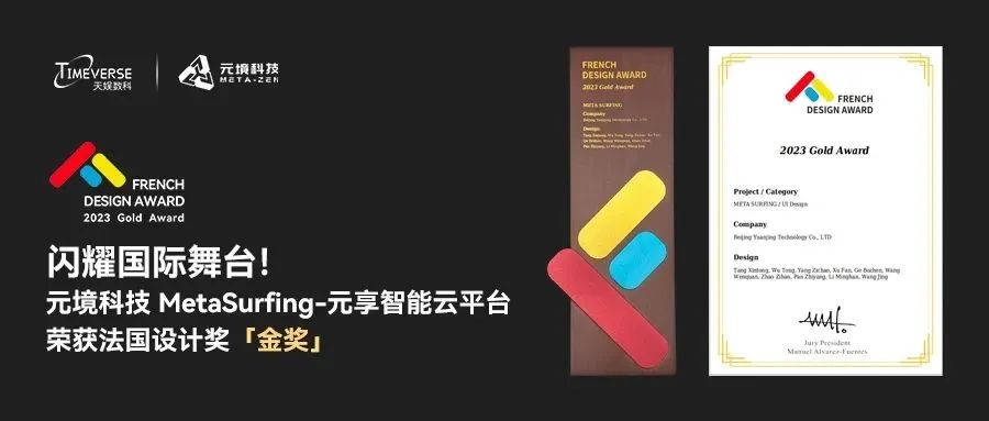 近日,2023 FRENCH DESIGN AWARD法國設(shè)計獎公布獲獎名單,天娛數(shù)科子公司元境科技自主研發(fā)產(chǎn)品「MetaSurfing-元享智能云平臺」憑借優(yōu)秀的產(chǎn)品體驗和先進(jìn)的軟件架構(gòu)設(shè)計理念,榮獲